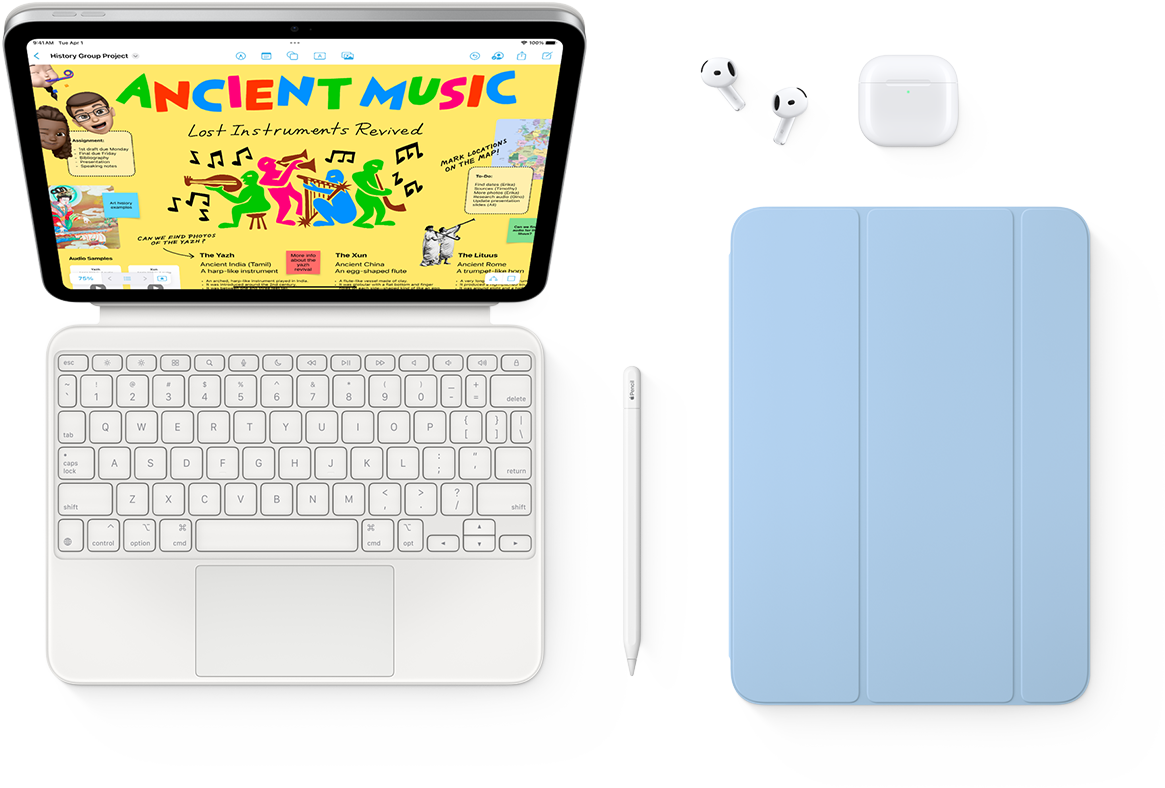 Išreišk save - piešk, užrašyk idėjas stulbinančiame ekrare naudodamas „Apple Pencil“. Kurk garso projektus, naudok puikius integruotus mikrofonus ir erdvę užpildančius stereofoninius garsiakalbius. Fotografuok, redaguok ir visa tai bendrink naudodamas „iPad“.