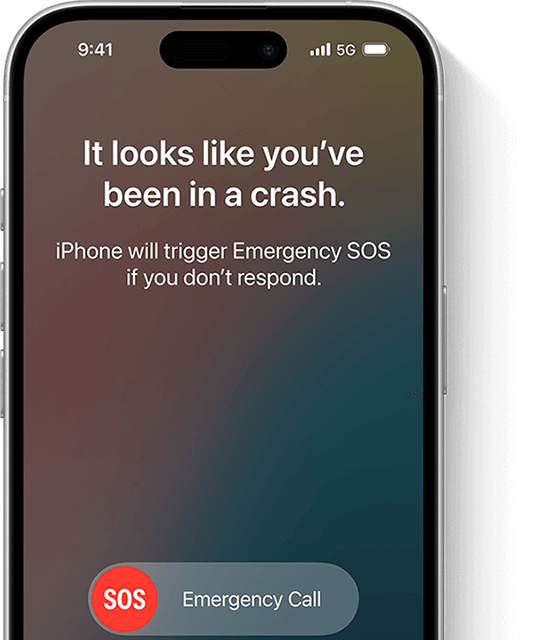 6. „iPhone 17“, „iPhone 17 Pro“ ir „iPhone Air“ gali aptikti rimtą automobilio avariją ir iškviesti pagalbą. Reikalingas mobilusis ryšys arba „Wi-Fi“ skambučių funkcija.