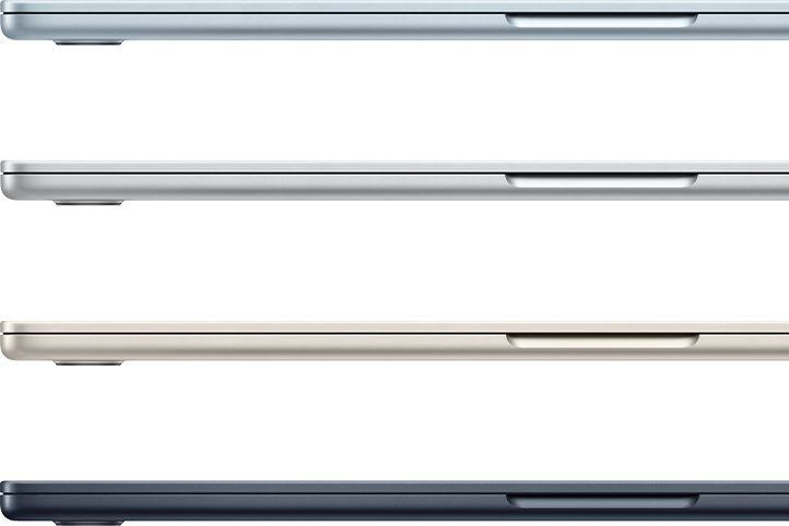 Iki 23 kartų greitesnis už greičiausią „Intel“ pagrindu veikiantį „MacBook Air“ („Intel“, 2020 m.): 2025 m. sausio mėn. „Apple“ atliko bandymus, naudodama serijinės gamybos 13 ir 15 colių „MacBook Air“ sistemas su „Apple M4“, 10 branduolių CPU, 10 branduolių GPU ir 32 GB RAM, taip pat serijinės gamybos 1,2 GHz keturių branduolių „Intel Core i7“ pagrindu veikiančias „MacBook Air“ sistemas su „Intel Iris Plus Graphics“ ir 16 GB RAM, į visas buvo įdiegtas 2 TB SSD. Išbandyta naudojant „Super Resolution“ su „Pixelmator Pro 3.6.14“ ir atvaizduojant 4,4 MB vaizdą. Našumo testai atliekami naudojant konkrečias kompiuterių sistemas ir atspindi apytikslį „MacBook Air“ našumą.